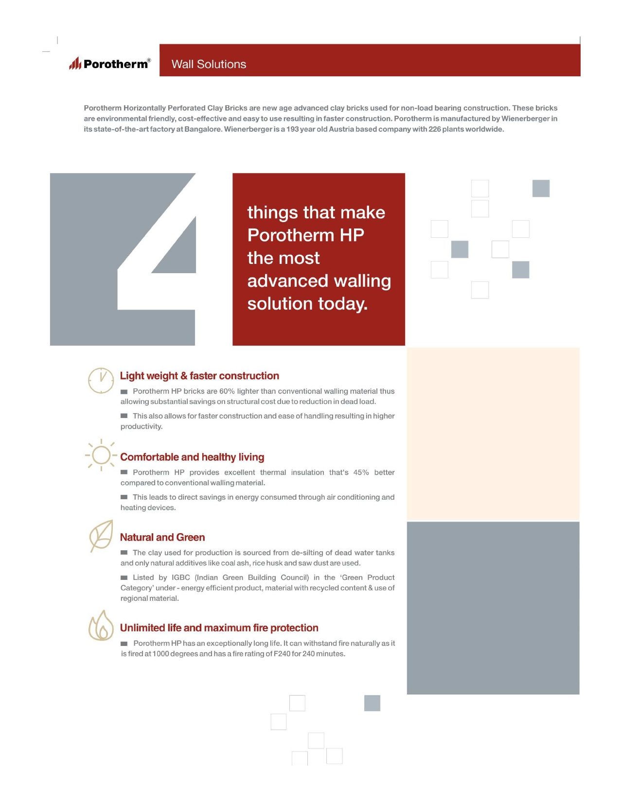 Wienerberger is a global specialist in-wall solutions. In India, the wall solutions offered by Wienerberger come under the brand Porotherm Smart Bricks which are made using the building material of choice over centuries i.e. Clay!